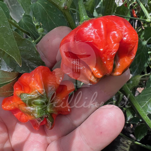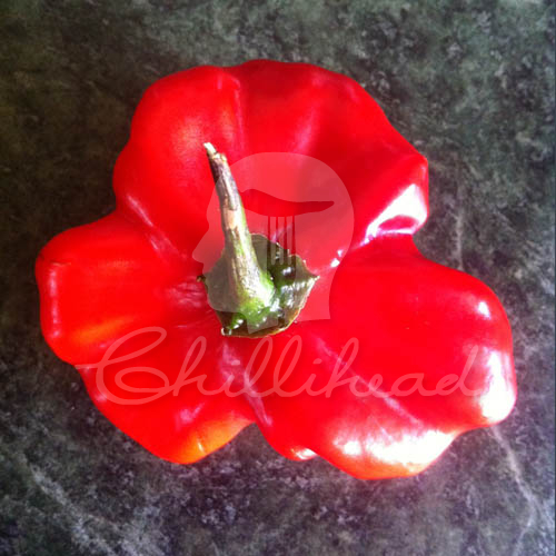 Aji Sandollar (Secluded) chilli seeds. The Aji Sandollar gets its name from a type of sea urchin / star fish called a Sand Dollar. These plants can get very large, growing to about 1,5m in height, spreading out quite extensively. Pods are a very unusual and beautiful shape. Pods are huge on these. Pods change from a grass green to a bright red. Very much pepper flavours here. Crisp and crunchy pods that have a clean, crisp pepper flavour. Next to no heat on these. Ideal for salsas and salads.