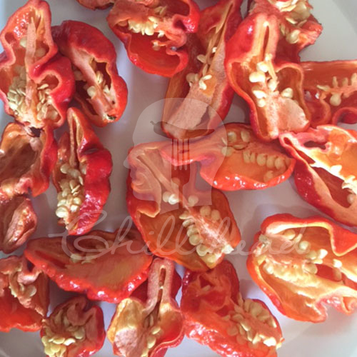 Brazillian Reaper Chilli Seeds. The Brazillian Reaper (C. Chinense) is a hybrid variety that is a cross between the Brazillian Ghost Pepper and the Carolina Reaper - hence its name. This is actually a very cool variety to grow. In our experience, this variety does not seem 100% stable. Normal germination, followed by good consistent growth, makes this variety stand out. Plants are very much Chinense, with large branching plants that can reach 60 - 80cm in height. A good producer in our books, producing lots of large, uneven, gnarly - angry looking pods. There does appear to be an inconsistent pheno on these. While some pods show small tails, others do not - but this is also the case with the pure Carolina Reaper strain. Pods ripen from a green to lovely red colour when fully ripe. As mentioned, these pods are lumpy and bumpy and increadibly hot. Tasty, very tasty - but insanely hot! The inside of these pods is full of placenta and oil, so expect serious heat :) Aroma wise, these pods reveal a fruity & floral aroma. The floral probably coming from the Ghost Pepper side of things. Heat wise, we would place the Brazillian Reaper at 1,000,000 - 1,300,000 SHU. It will fluctuate according to growing conditions, but this is a very hot pepper by any standards. Use sparingly in your cooking or great for drying and making chilli powder, or liquidise and make a cracking chilli sauce.