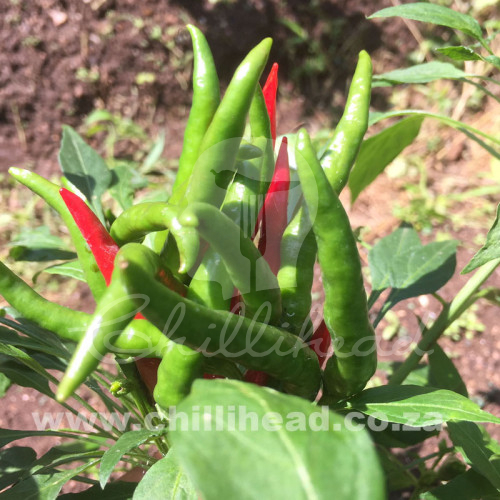 Chi Chien Chilli Seeds. The Chi Chien (C. Annuum) is a well known Chinese heirloom chilli. This chilli grows well and can be expected to reach a height of around 100cm. A typical annuum style plant structure to this variety with a tendancy to grow vertical and not bushy. This plant - in our experience - will definitely benefit from "Topping" to encourage these plants to broaden out. White flowers give way to green Cayenne type pods that grow facing heaven in a rather attractive and unusual cluster of pods (much like the "Poinsettia Chilli aka Hot Claw Chilli"). We also note that "The Rooster Spur Chilli" has an uncanny resenblence to this chilli. Whether or not these are all one and the same variety, we can not confirm - but there certainly is a very simillar resemblance in all of these. The green pods eventually ripen to a bright red and this chilli has major easthetic appeal when laden with these bright red clusters of pods. Besides the aesthetic appeal of this chilli, it is also a very versatile chilli in the kitchen. Used extensively in chinese cuisine, these chillies are super fresh or dried and make a very attractive red chilli powder. These chillies are hot and will add instant heat to dishes. A fresh, clean flavour to these chillies with a peppery heat. A geat variety to grow in the chilli patch - espacially if you like Asian cooking.