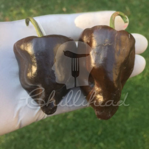 Chilhuacle Negro Chilli Seeds. The Chilhuacle Negro (C. Annuum) is a rare Mexican chilli that originates from teh Cañada valley in Oaxaca. Literally translated, this chilli means "ancient". This chilli is most famous for its use in Mole sauce. The fact that this chilli is dark brown in colour does lend itself to making mole sauce. This chilli is also very unique in its flavour profile. The falvour of these chillies is sweet and fruity with hints of cocoa. These chillies are specialised and heat is not a factor with these. They are mild, coming in at around 1,000 - 2,000 SHU. These are definately a specialised variety. In our books, plants grow to around 50cm in height and not great producers, yielding but just a hand full of pods that have a poblano shape to them. Pods ripen from dark green to dark brown when fully ripened. Pods are not terribly large - reaching a length of around 10cm. Pods are thin skinned, making them great for drying. When used in cooking, pods are traditionally roasted in a pan to realease flavour and add a little roasted aroma to the pods before adding to dishes. A really rare specialised chilli for your Mexican cooking!