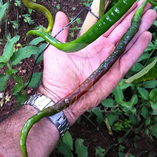Joe's Long Cayenne Chilli Seeds. This is a really awesome variety of Cayenne (C. Annuum). This variety holds the title for the worlds longest chilli pepper in the Guinness Book Of Records with a length of 505mm. We have not managed to grow pods this long in our grow, but we can confirm that this variety has exceptionally long pods that easily reach 30cm in length. With a little effort, definitely longer. A good grower, producing large plants with lots of extra long Cayenne pods. The flavour of these Cayennes is exactly like the regular Cayennes, but much bigger pods. The Cayenne being a classic in the world of chillies renowned for their great flavour and use as powders in cooking. This is a Cayenne with a difference and well worth growing :)