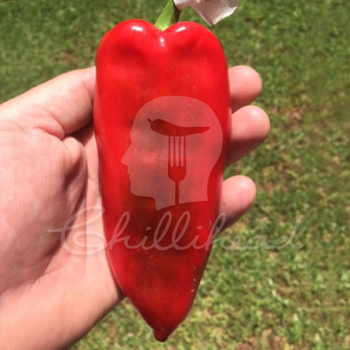 Kurtovszka Kapia chilli seeds. The Kurtovszka Kapia (C Annuum) is a Hungarian heirloom variety. An easy going germinator that grows consistently throughout the season to a height of about 70 - 80cm. Plant is vertical and typically annuum like in appearance. Pods are large with a length of 10 -15cm. These are large pods that will get to a good 200g in size. Pods a very fleshy and juicy. Pods will ripen from a grass green to red once fully ripe. This variety does not appear to be a huge producer of pods, but then again pods are huge. Plants will definately require support and staking to prevent the pods from tumbling over the plant. The pods are very sweet and fruity. There is no heat to these. These are fantastic for stuffing, eating fresh or cooking in stews, chopping up into salads and salsas.