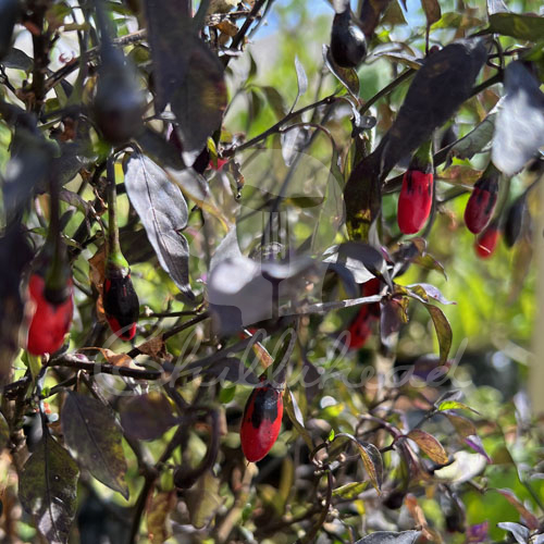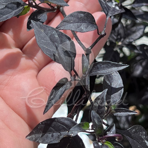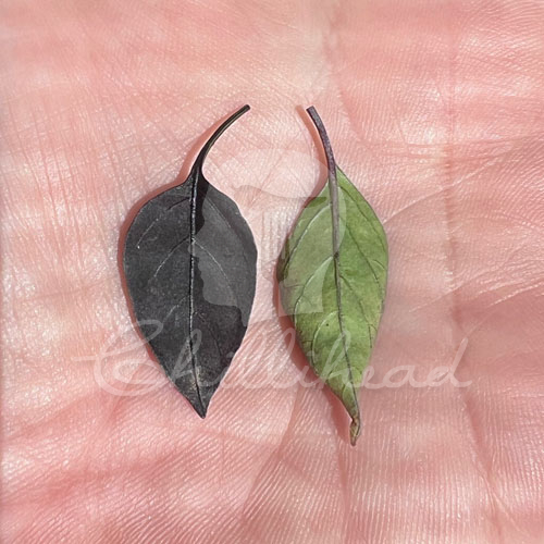 Ruby Teardrops chilli seeds. The Ruby Teardrop (C. Annuum) is a lesser known variety, but really awesome plant. Compact, delicate and bushy this plant grows well and has grown to around 50 - 60cm in our experience. Lovely dark purple/black foliage and teardrop shaped black pods that are downward hanging, mature to red when fully ripe. This is probably the blackest foliaged plant you will find in the pepper world. If you are inot crossing and are looking for black genetics. This plant is as black as they get. Flavour on these chillies is distincly annuum. Upfront heat and a lovely peppery burn. Heat tops at around 80,000 - 100,000 SHU. This plant is very eye catching due to its colour. An attractive plant that would do well in the garden as well as container growing. These chillies definitely have their place in the kitchen too. Great for cooking and super for making chilli flakes or powder. We have a really soft spot for this plant. It's unusual and seems to just tick all the boxes.